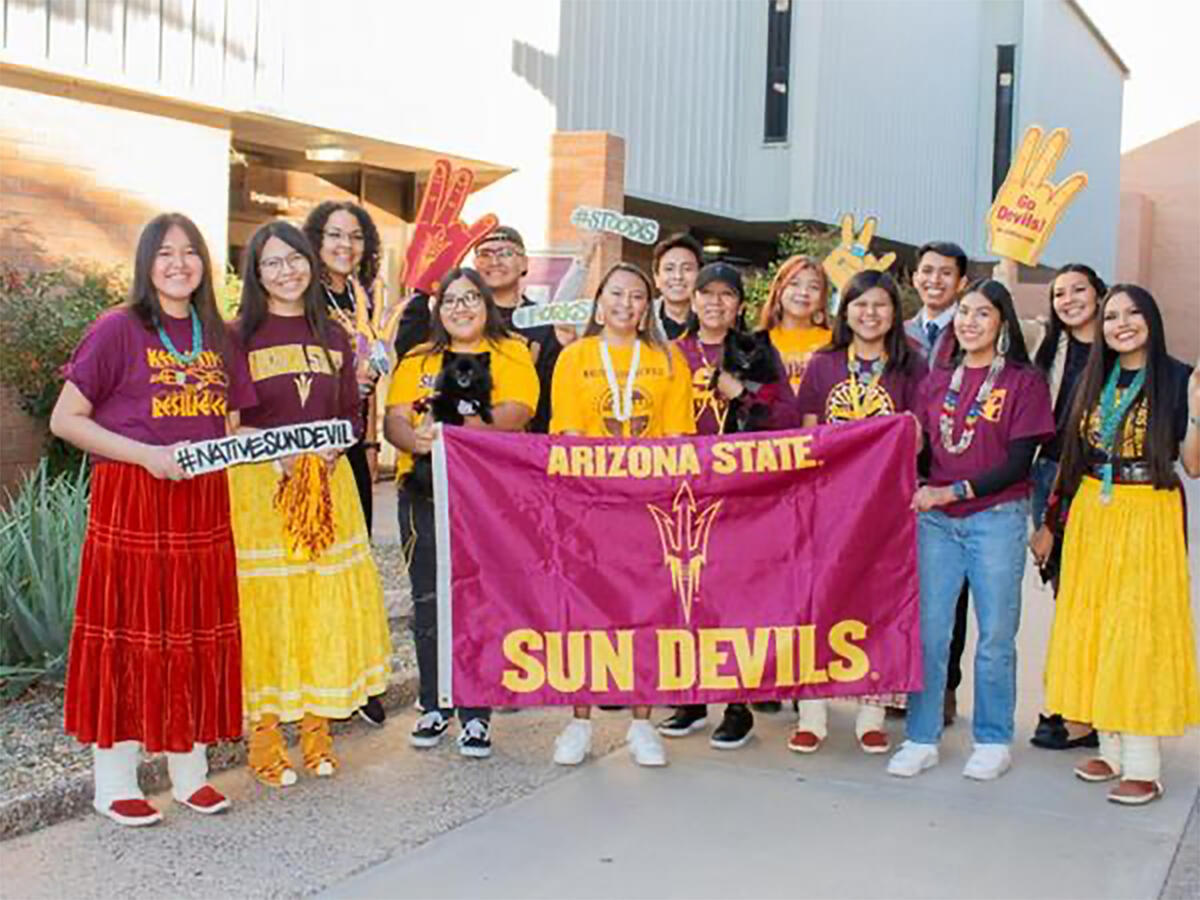Throughout the school year, TNT makes small visits to reservation schools and other schools in the Phoenix-metropolitan area that serve American Indian students and hosts AI/AN students visiting ASU campuses. One week before the fall semester begins, TNT travels on a week-long tour, making stops in numerous tribal communities. The tour is meaningful, not only for the communities that TNT visits, but also for the ASU students who participate. They develop their presentation skills, make positive contributions to Native communities and create new bonds with their fellow Sun Devil peers.